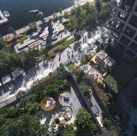 Велопарковка, колясочная, гостевой санузел, коворкинг со всем необходимым для продуктивной работы, сквозные выходы на набережную и в приватные дворы, лаундж-зона с розетками для зарядки телефонов и ноутбуков