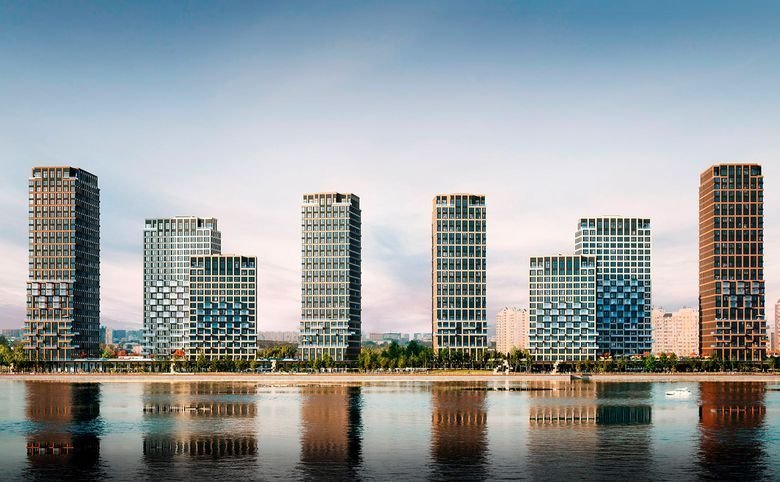 Разноэтажный силуэт из восьми башен уравновешен и лишён монотонности. Каждая смотрит на реку так, чтобы гарантировать панорамные виды на речной пейзаж