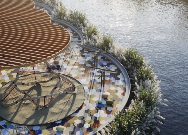 Река — идеальное соседство для района нового формата и множество преимуществ: отличная экология, ощущение близости к природе, живописные виды. У жителей будет возможность совершать утренние пробежки под пение птиц, практиковать SUP-серфинг на зеркальной глади, заниматься йогой под шелест листвы, встречать яркие закаты, дыша свежим речным воздухом