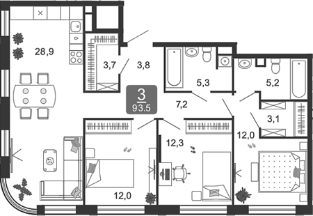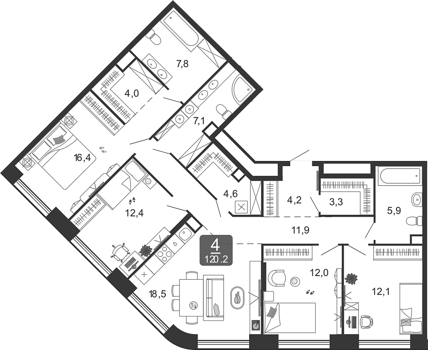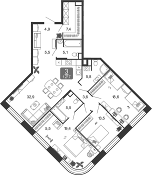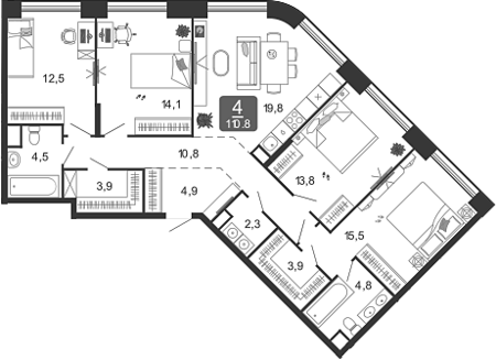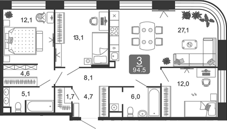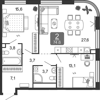 Большой выбор квартир с террасами — от 2-комнатных до 5-комнатных. Террасы, с которых открывается живописный вид на набережную Шагала и Москву-реку или внутренний двор