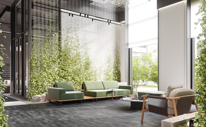 Лобби в стиле урбан-минимализма удивит вас своим простором и функциональностью. Помимо привычных колясочных, санузлов и ресепшн-зоны, здесь появится полноценное пространство для отдыха, работы и творчества