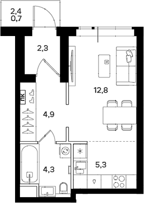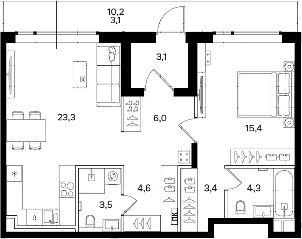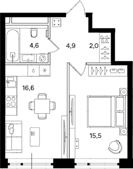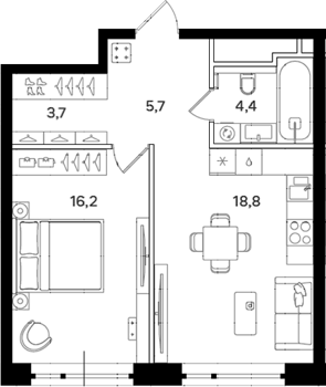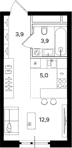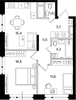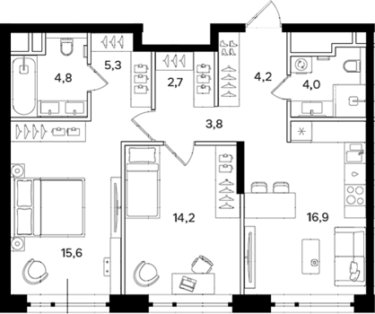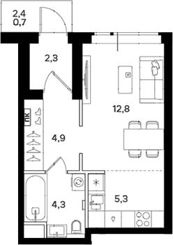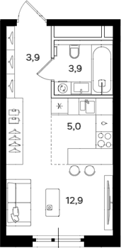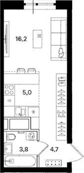 Площадь от 38.5 м2