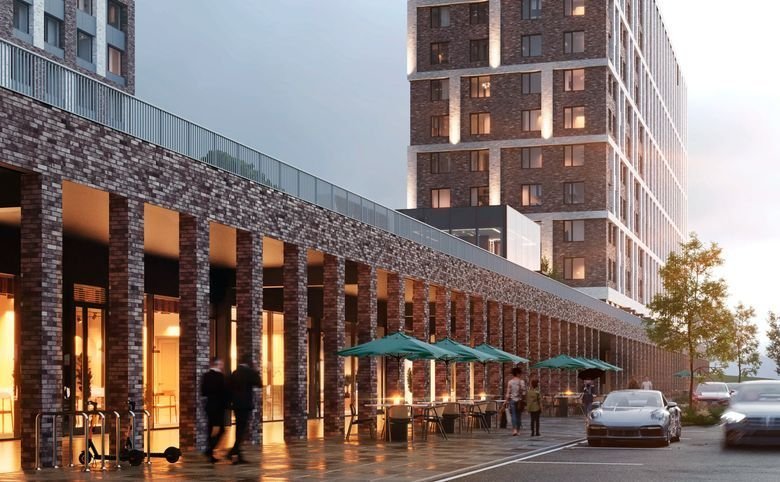 На первых этажах домов — кафе, супермаркеты и сервисы шаговой доступности