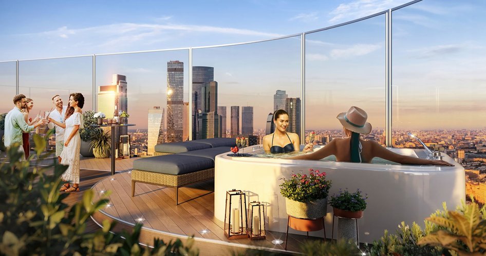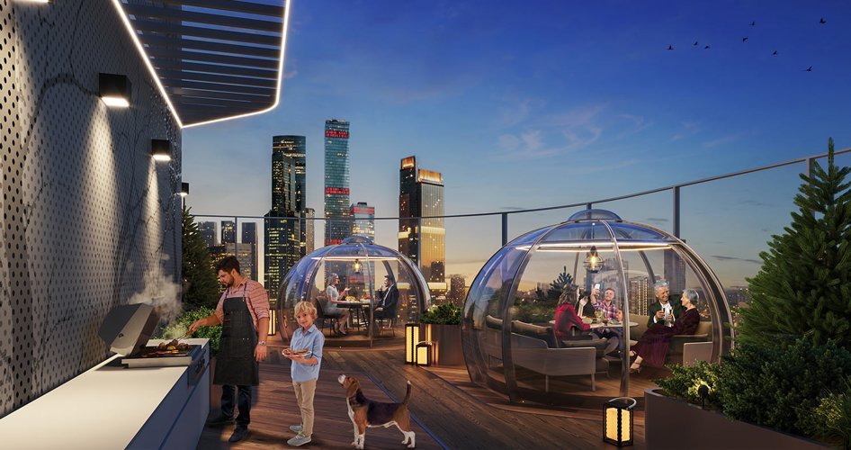 Впервые лаунж-зоны на крышах небоскребов! River Park Кутузовский поднимает домашний отдых на недосягаемую высоту. На крыше каждой башни, доступная только для резидентов комплекса небывалая по своему наполнению зона отдыха