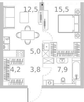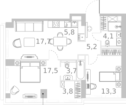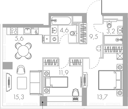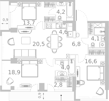 Площадь от 40.9 м2