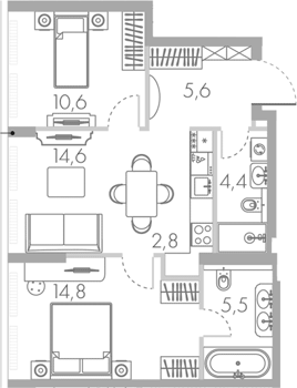 Площадь от 48.9 м2