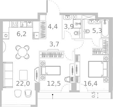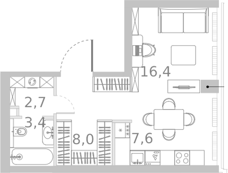 Площадь от 36.4 м2