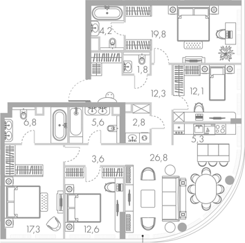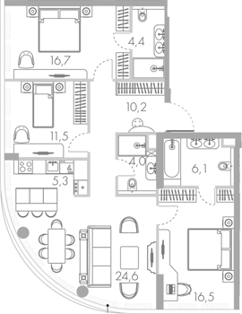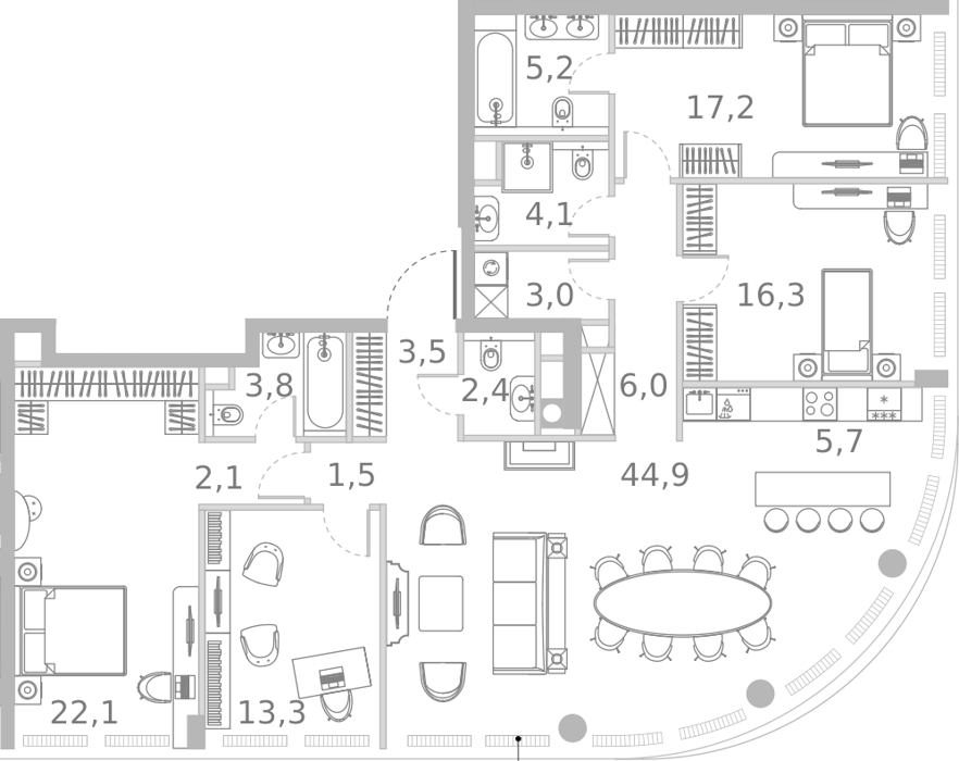 Квартиры с балконами, террасами, радиусными окнами
