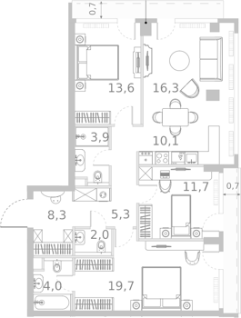 Площадь от 85.9 м2