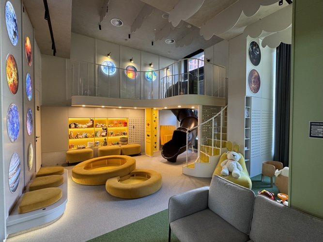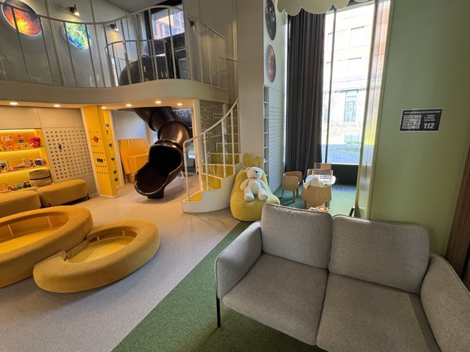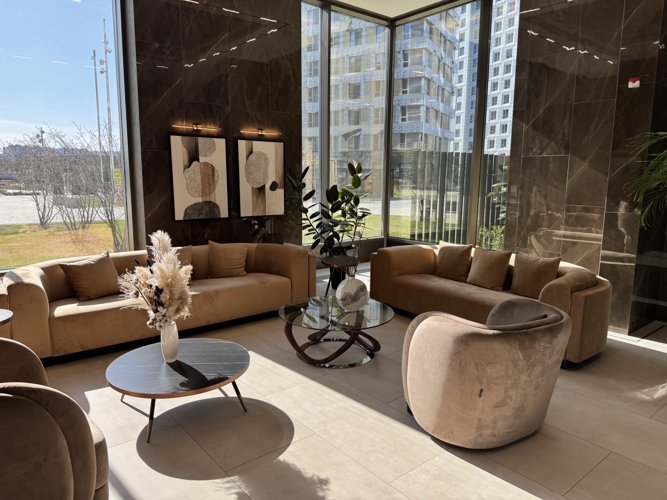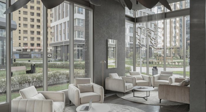 В лобби каждого корпуса находится ресепшн, зона ожидания с мягкими диванами, гостевой санузел, помещения для мытья лап питомцев, колясочная. Оформление холлов меняется от корпуса к корпусу, но везде сохраняется единый стиль. Все лобби со сквозными проходами со стороны двора и внешнего периметра