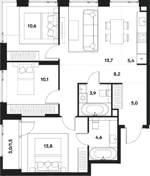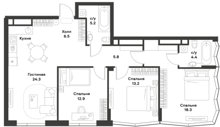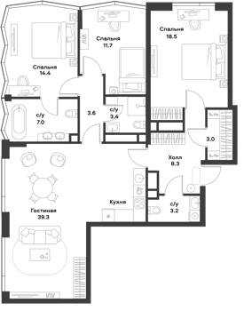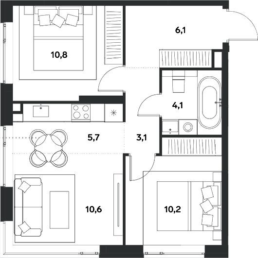 Квартиры сдаются в вариантах отделки shell and core (без отделки) и white box (предчистовая отделка). Отделка shell and core дает полную свободу в выборе модификаций планировки и материалов. Отделка white box экономит время на ремонт, поскольку все грязные и шумные работы производятся до заселения, коммуникации разведены и проверены