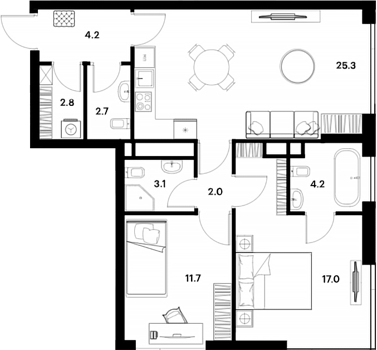 7 минут пешком до метро Спартак и 15 минут до Тушинской и МЦД-2.