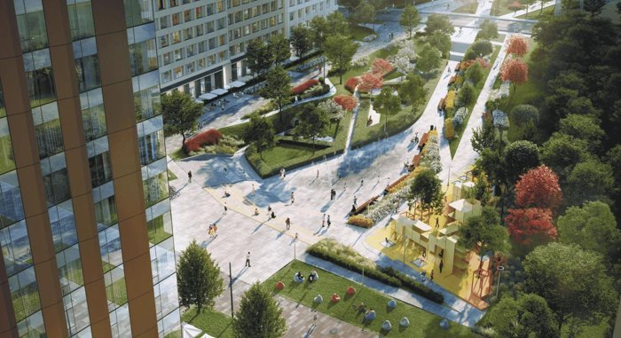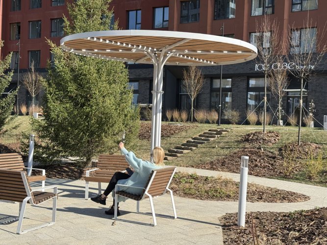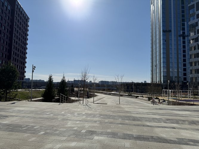Прогулочные маршруты, различные сценарии для отдыха и спорта, оборудованы площадки для детей разных возрастов и места для спокойного отдыха. Уникальный игровой плейхаб с оригинальными качелями, батутами, звуковыми и акустическими элементами, столики для пинг-понга, сухой фонтан, амфитеатр, тенистая роща и cолнечный склон — где можно устроить пикник или отдыхнуть на траве