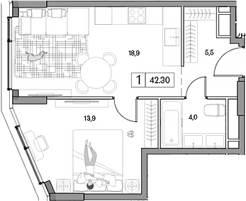 Площадь от 42.3 м2