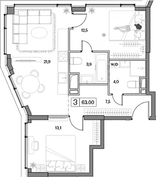 Площадь от 63 м2