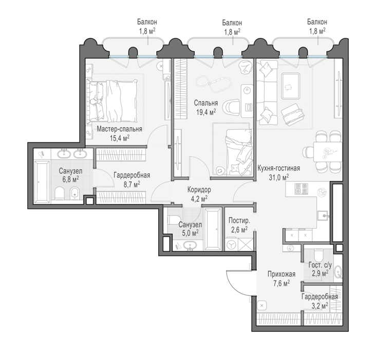 В едином ансамбле переплетены три узнаваемых архитектурных стиля: авангард, современность и неоклассика, облик которых никогда не надоест и всегда будет выглядеть актуально